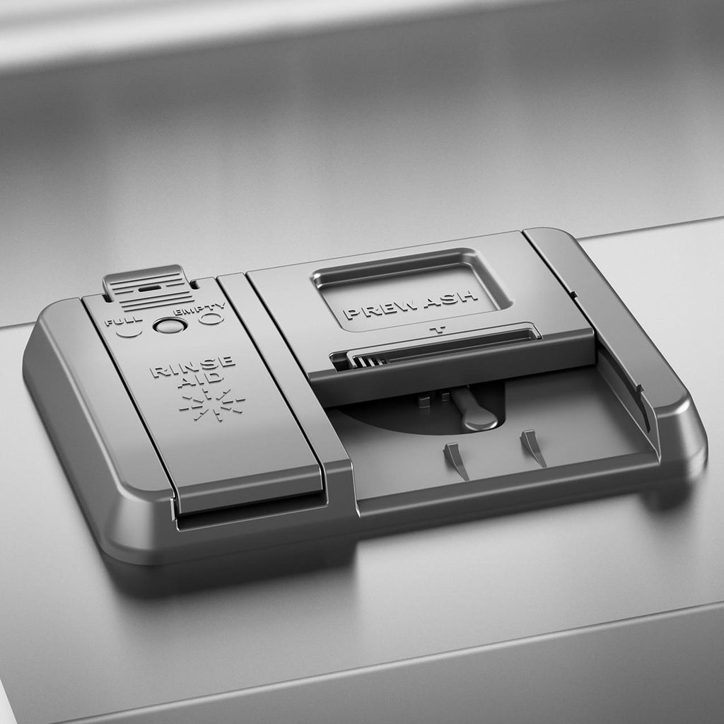 Blends into dishwasher door providing a flush design and accessible gripping for a seamless opening experience.