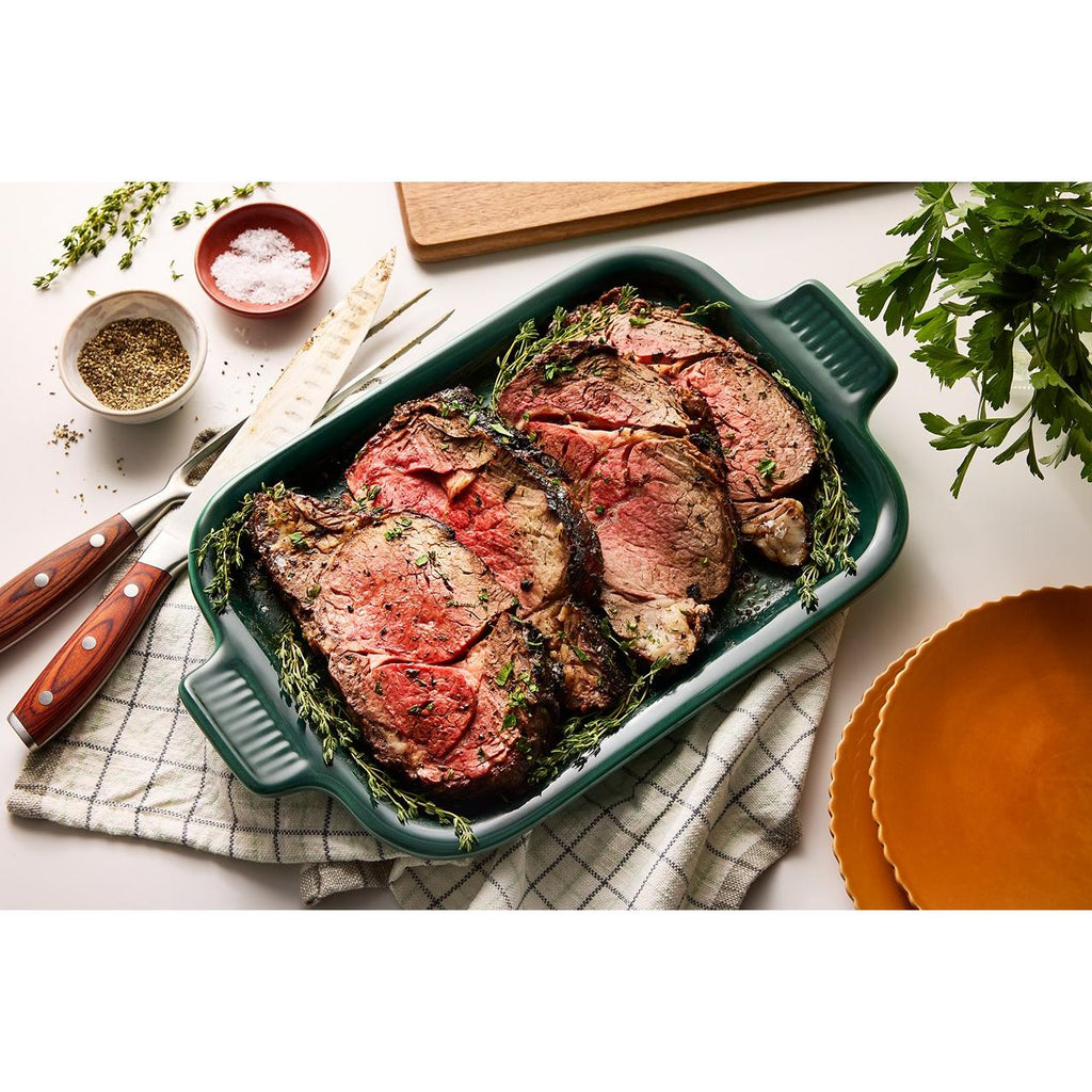 Uses dual heating elements and a fan to roast at temperatures up to 450°F, eliminating the need for a countertop convection oven. The included oven rack fits a 9" x 13" pan.