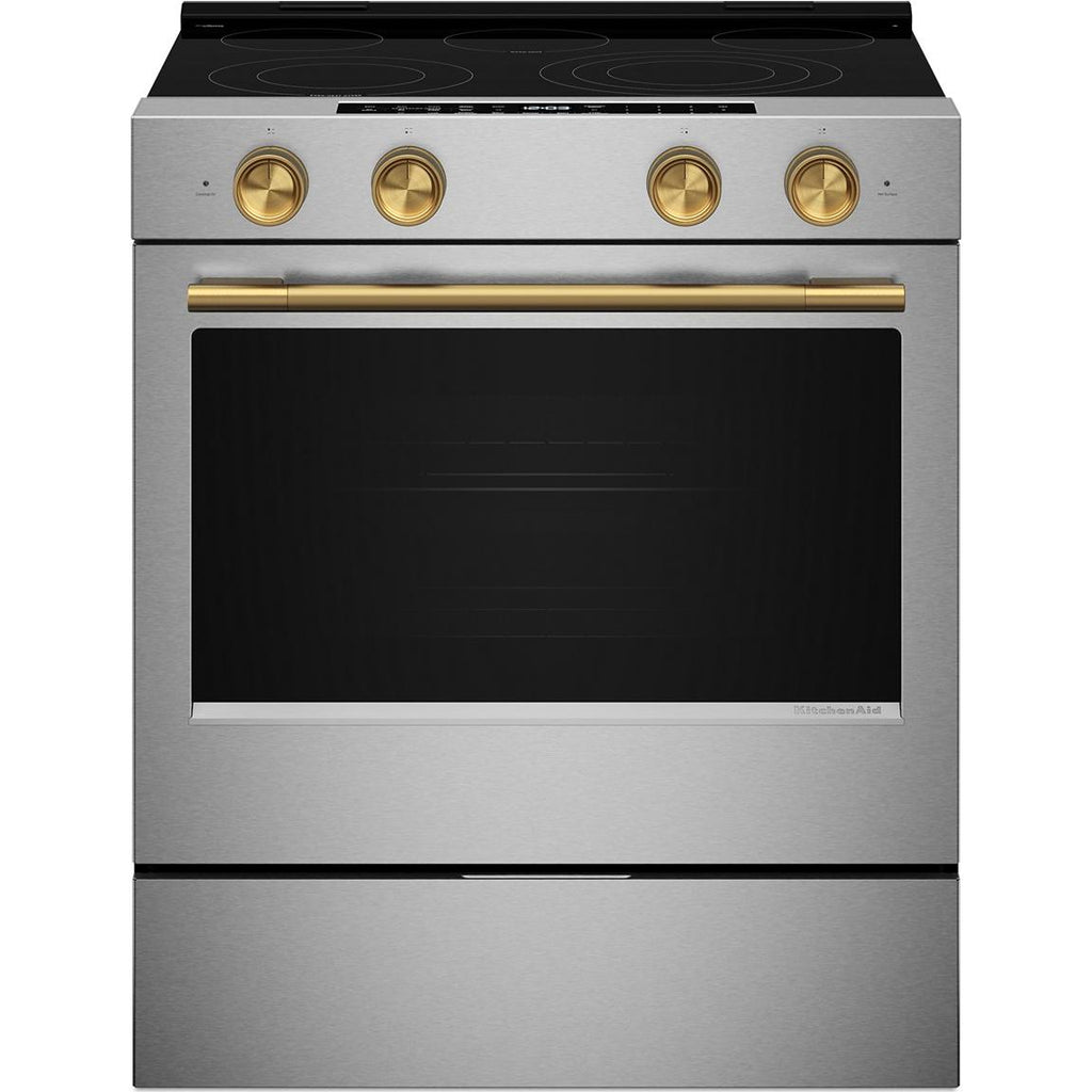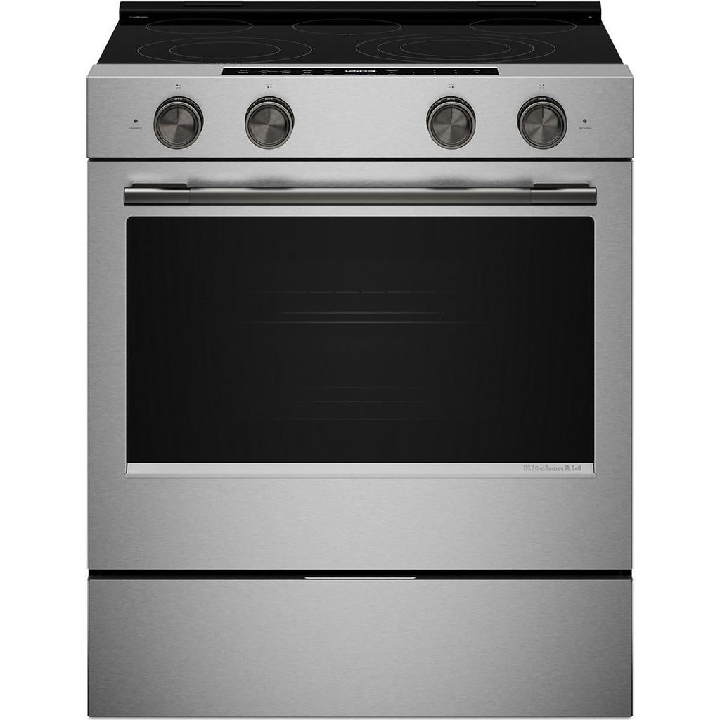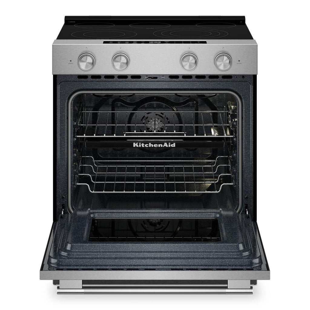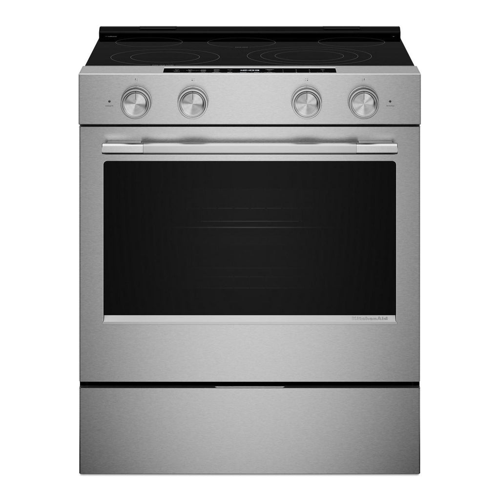 lets you control the oven with your Google Assistant or an Alexa-enabled device to stay hands-on or hands-off.* The KitchenAid™ App lets you conveniently preheat, proof, bake, and roast, plus store your favorite recipes for easy reference. *Wi-Fi & App required. Features subject to change. Amazon Alexa capabilities available in U.S. only. Google Assistant capabilities available globally. For details and privacy info, visit KitchenAid.com/Connect (U.S.) or KitchenAid.ca/Connect (Canada). Alexa, Google and certain other trademarks are owned by their respective companies.