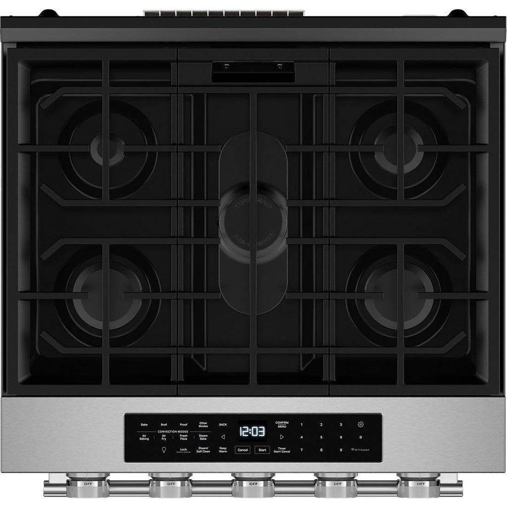 KitchenAid 30-inch Smart Slide-in Gas Range with Convection Cooking Modes and 2-in-1 Burner KSGS530SPS