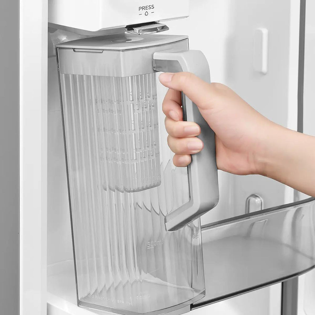 Always have filtered water at your fingertips with this built-in pitcher that automatically refills, ensuring it’s ready when you need it. No more waiting at the sink or taking up valuable fridge door space. Simply grab and go, whether you're hosting guests or quickly filling your reusable bottle on the way out.