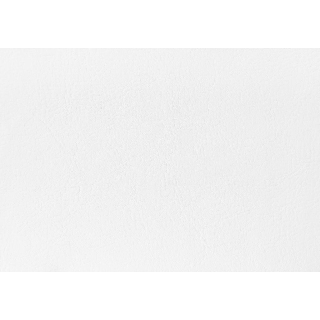 • Button-tufted upholstered headboard in a white leather-look fabric