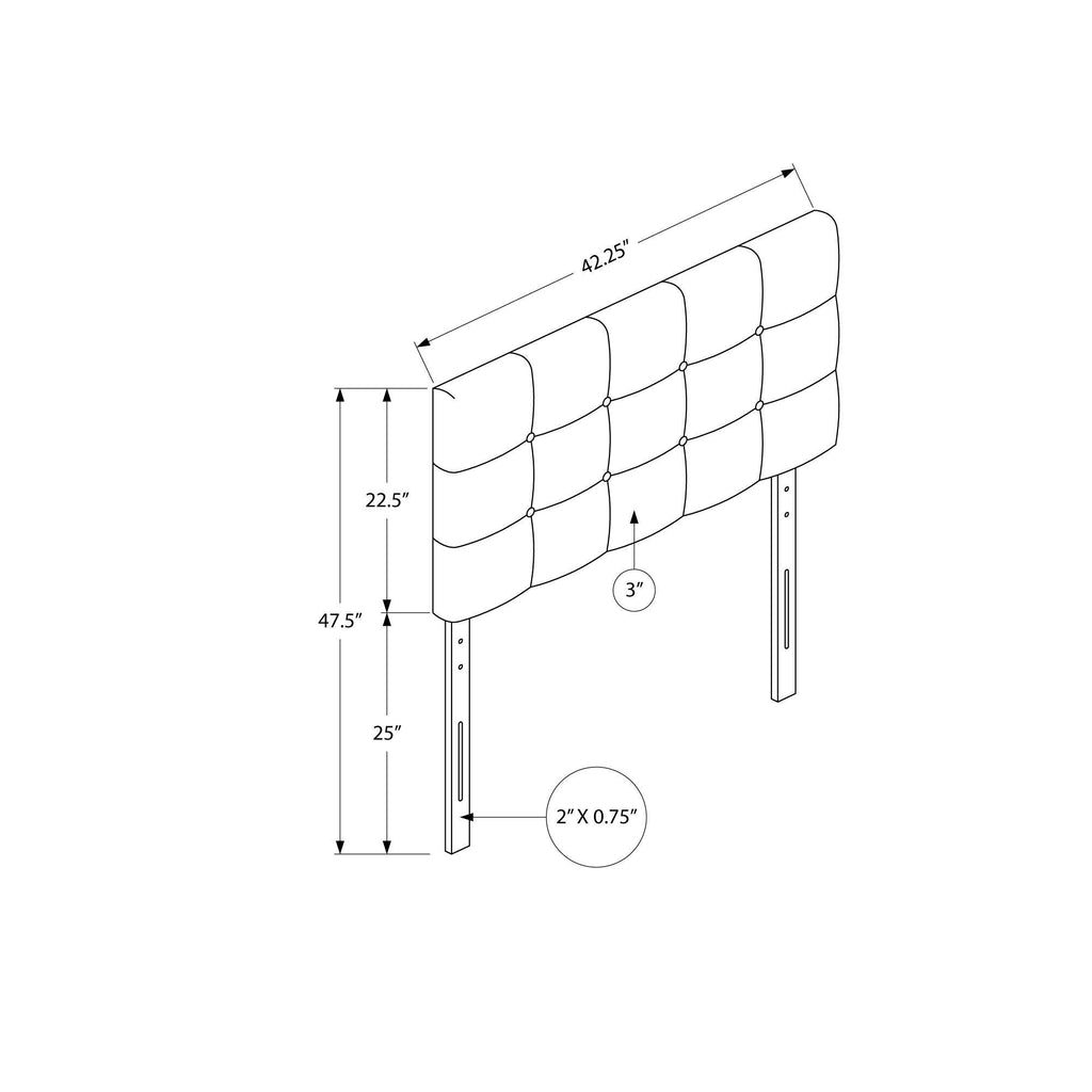 • Button-tufted upholstered headboard in a white leather-look fabric
