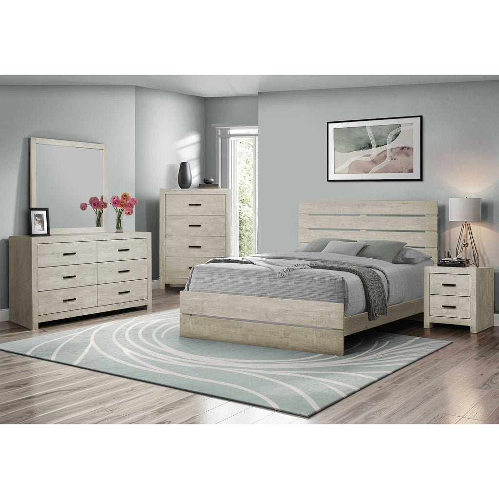 • Bring a contemporary aesthetic to your bedroom with this queen size bed in a chic bleached oak finish, seamlessly blending into any modern space