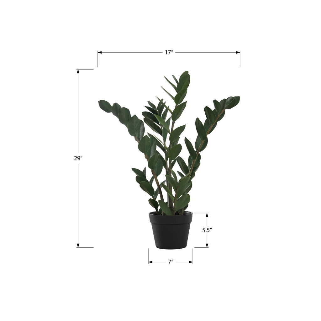 • 29" tall indoor artificial zz tree in a 6" black pot adds an eye catching pop of greenery to any floor or surface in your home
