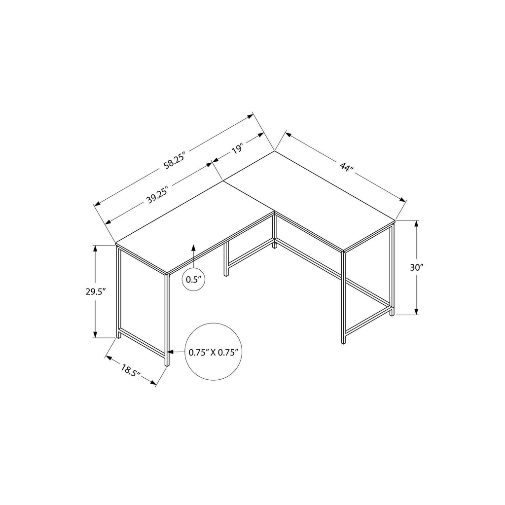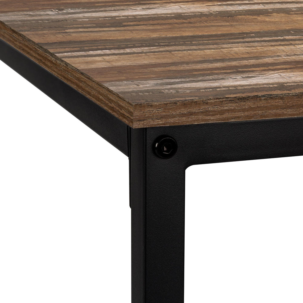• L-shaped corner computer desk with a large desktop surface in a brown reclaimed wood-look finish
