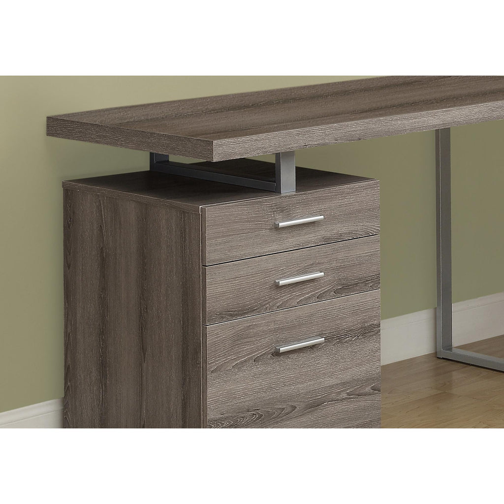 Dark taupe reclaimed wood-look finish; Three side drawers