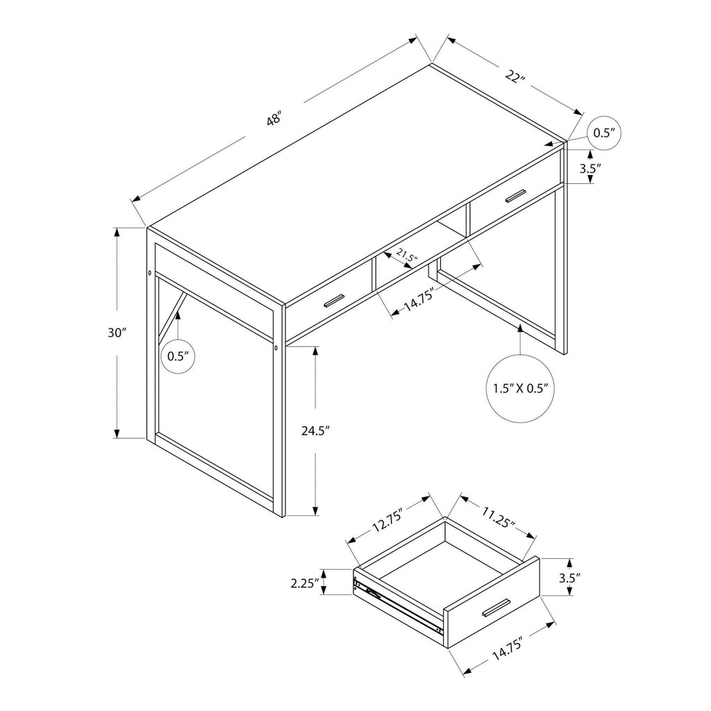 • Drawer Interior - Length: 12.75"