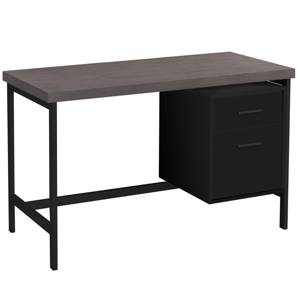 • Large thick paneled work surface finished in a grey wood-look with a stylish black base