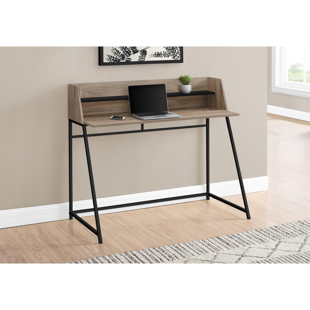• Computer desk in a white finish featuring a small hutch with 1 long shelf