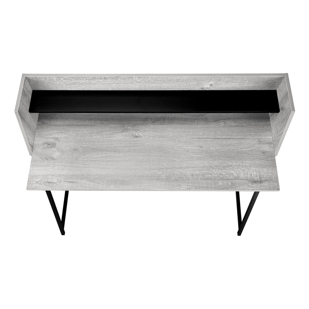 • Computer desk in a white finish featuring a small hutch with 1 long shelf