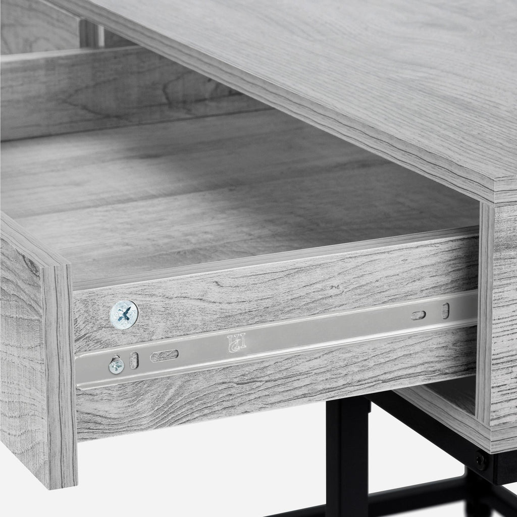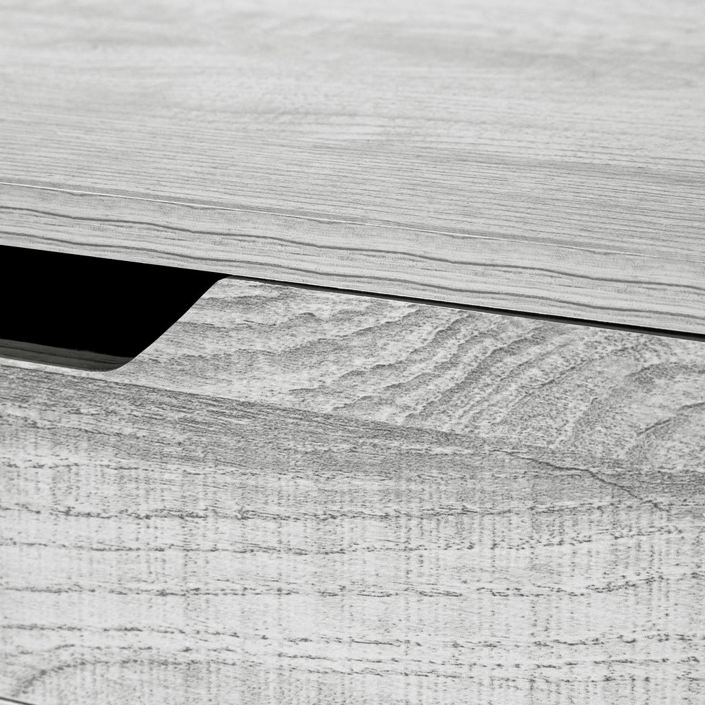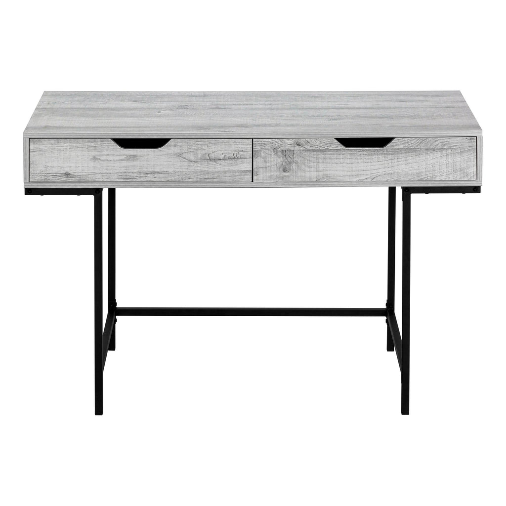 • Computer desk in a white finish with 2 storage drawers featuring wide, cutout handles and metal drawer slides