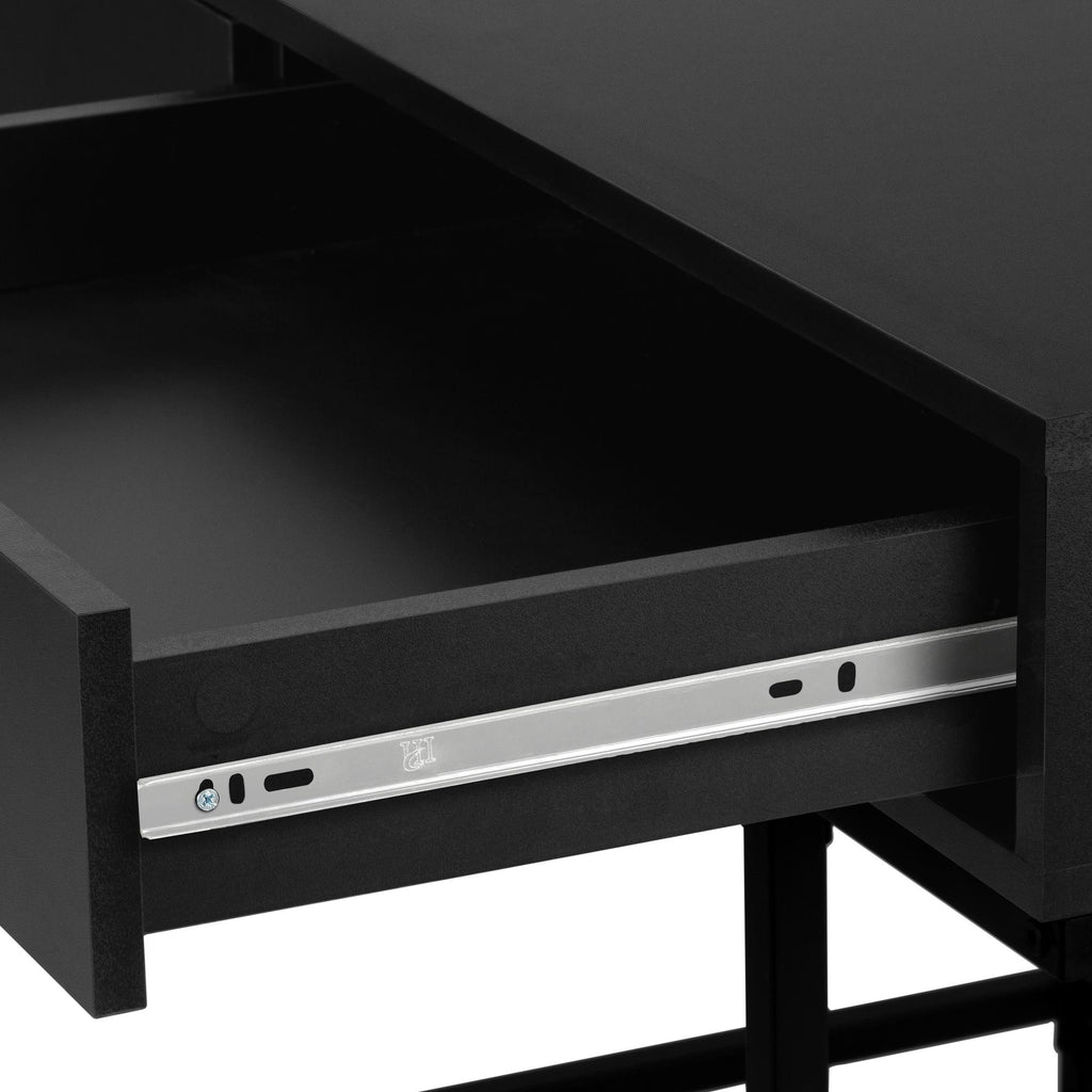 • Metal base in a white finish provides stability and includes slender metal legs that are recessed under the rectangular desktop