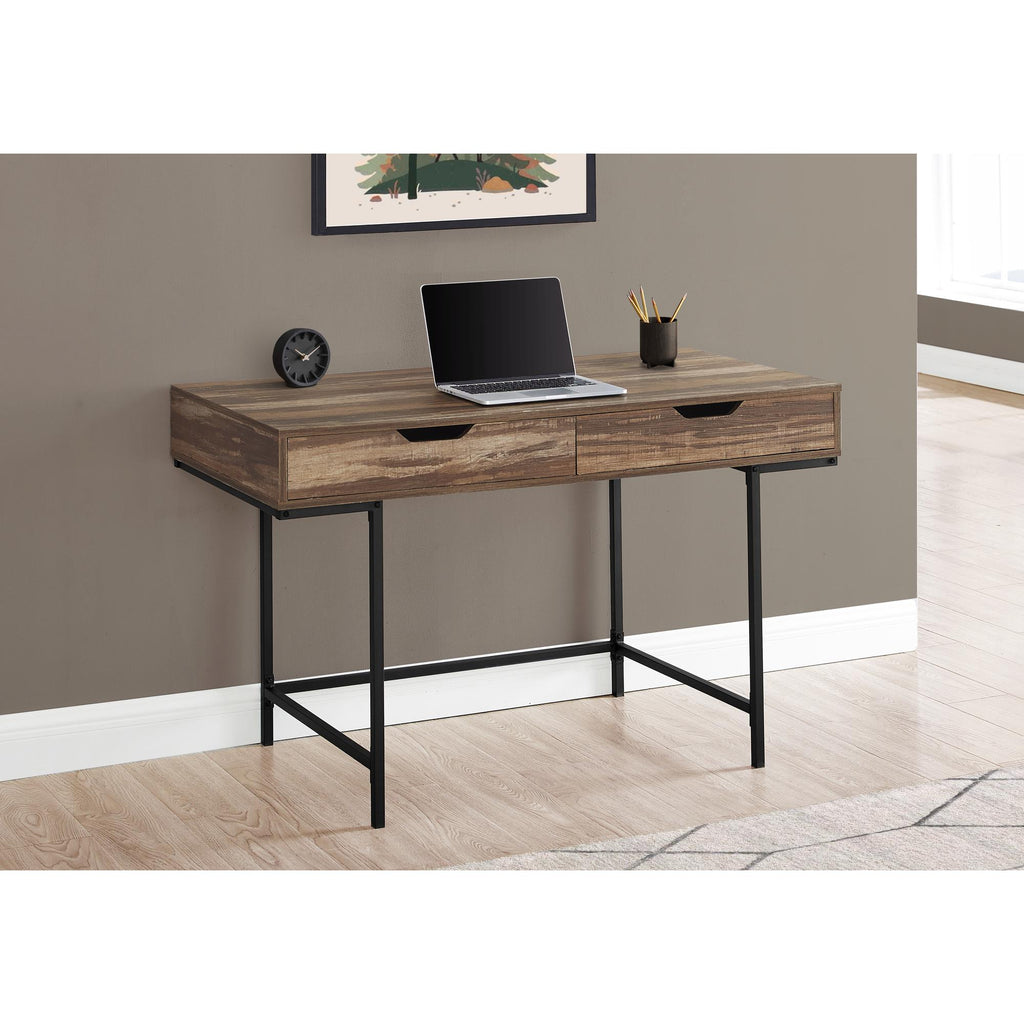 • Computer desk in a white finish with 2 storage drawers featuring wide, cutout handles and metal drawer slides